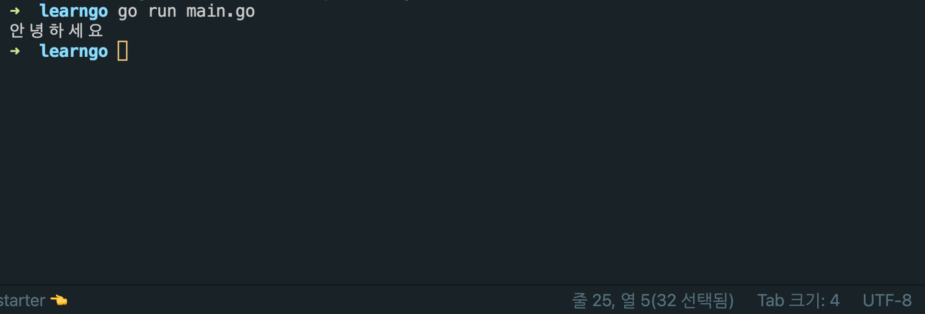 결과는 터미널에 정상적으로 한글이 나온 걸 확인할 수 있다.