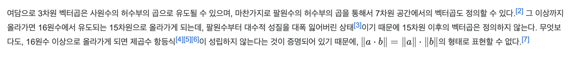 - 외적 (cross product)의 곱셈 가능 차원