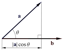 → ||a|| → \( \sqrt{a_0^2+a_1^2...+a_n^2} \) - 벡터의 크기를 곱한뒤 사이각\( (\theta) \)의 \( \cos \) 한 값을 곱해준다. \( ||a|| * ||b|| * cos(\theta) \)