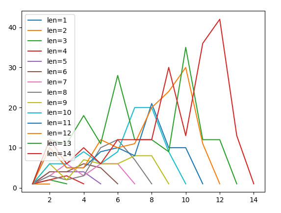 N = 14 (나누는 글자수) 일 때 무려 1200회까지 뛰는 걸 확인할 수 있다.