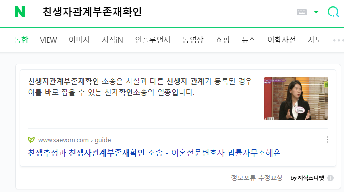 여기 등장하는 “친생자관계부존재확인”라는 단어가 있다.