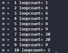 # print("n = ",n,"loopcount=",letterLoop(text,n))