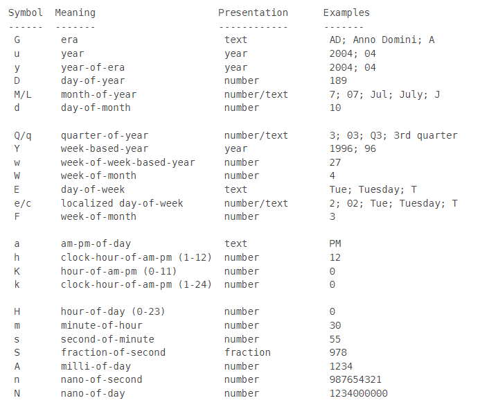 DateTimeFormatter formatter = DateTimeFormatter.ofPattern("yyyy-MM-dd");