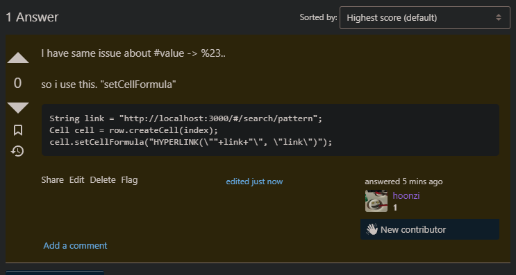 기존에 엑셀에 외부링크를 넣을 때 (정확히는 인터넷 페이지 주소, url) 아래와 같이 코드를 짰었고, 문제가 없었다.