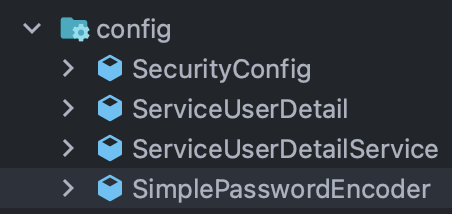 필요한 클래스는 총 4개 (앞서 만든 SecurityConfig를 제외하면 총 3개)