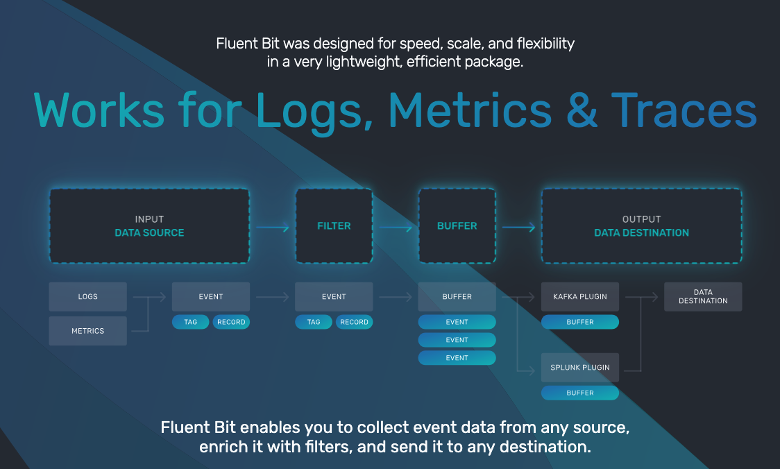 fluent-bit는 lightweight 로그 수집 도구로, 다양한 로그 소스를 수집한 뒤 태그를 붙이고,