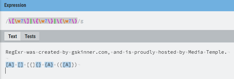 [] 과 [A] 둘다 감지 할수 있고, 각 괄호에 대해 하나씩 총 3개의 regex 패턴을 만든다.