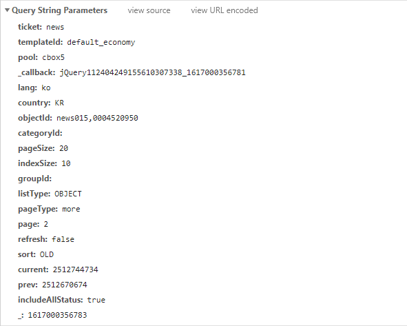 request url을 통해 결과를 받았는데 그럼 url에 붙은 parameter를 좀더 살펴보자