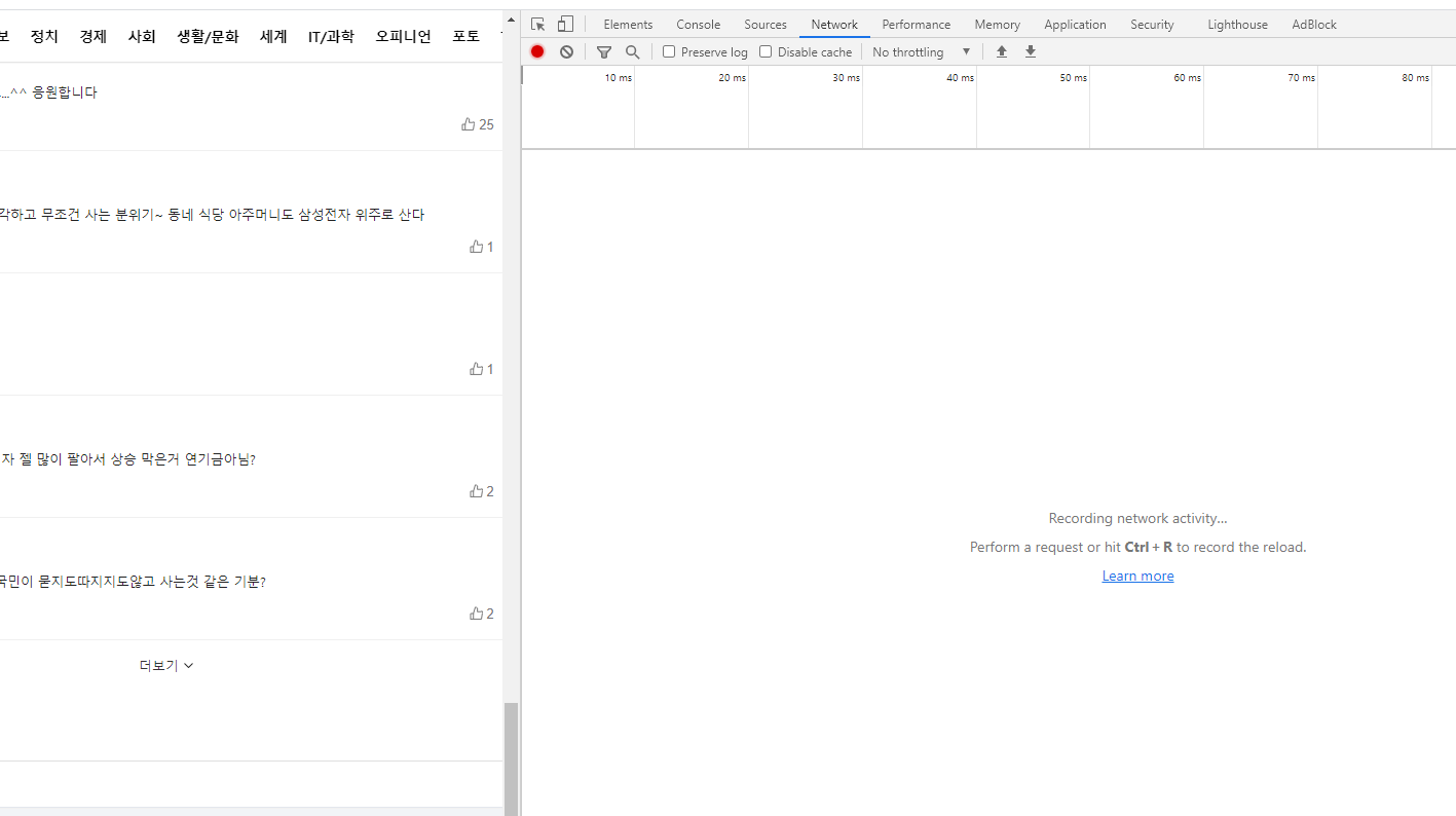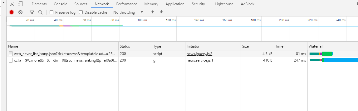 크롬을 기준으로 F12를 눌러 개발자 도구를 연 뒤, network 탭으로 가준다.