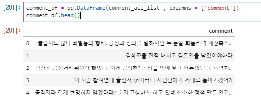 comment_df = pd.DataFrame(comment_all_list , columns = ['comment'])