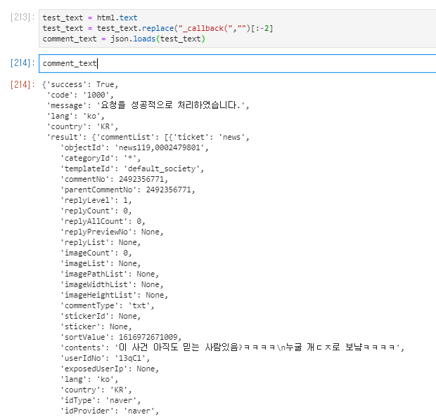 test_text = test_text.replace("_callback(","")[:-2] #앞 _callback( 과 뒤 ); 부분을 자르기 위해