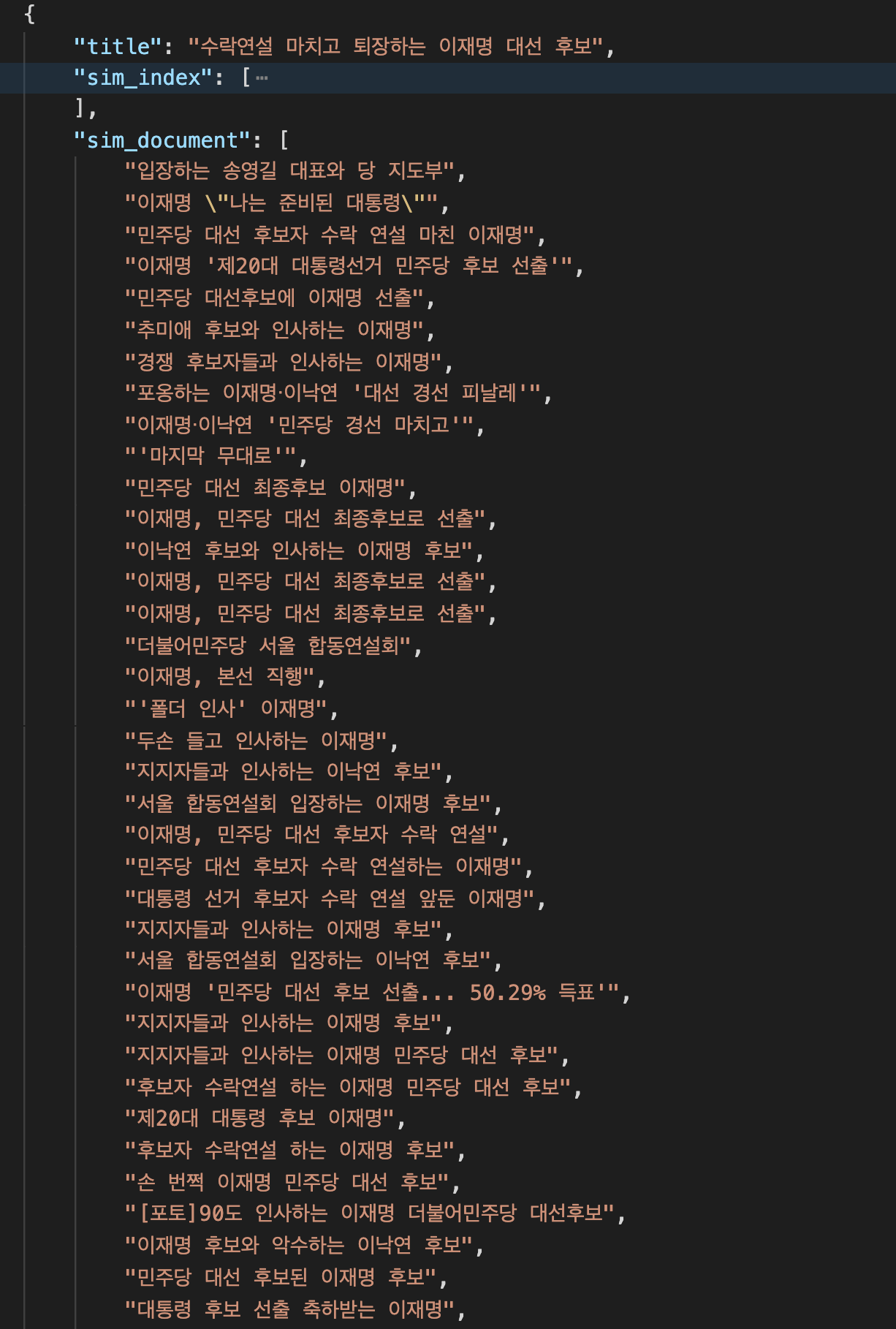 클러스터는 title / sim_document_title_list 로 나뉘는데 이걸 title / content 로 바꿔 생각해보자