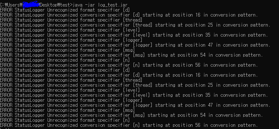 그런데 log4j2 라이브러리는 그런식으로 사용하니 eclipse내 실행시 문제는 없었지만, executable jar를 만들어 cmd창에서 돌릴 경우 문제가 발생했다.