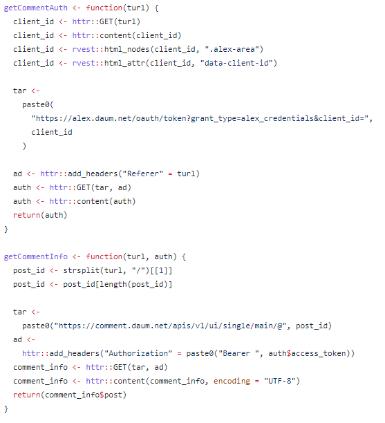 누군가 다음 댓글을 가져오는걸 R 로 구현해놓으셨다.