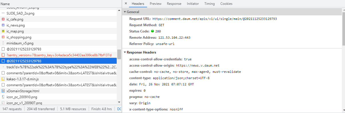 request 로 특정 url (https://comment.daum.net/apis/v1/ui/single/main/) 에 기사 url 마지막 부분을 같이 던져주면
