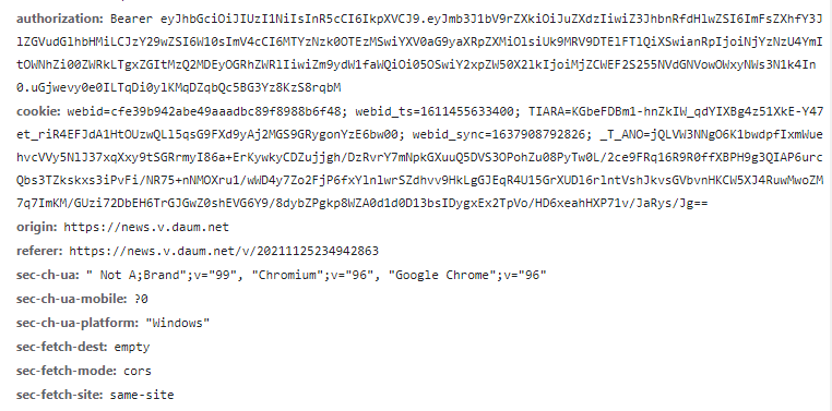 우리가 필요한 부분은 저 authorization 시리얼 값인데