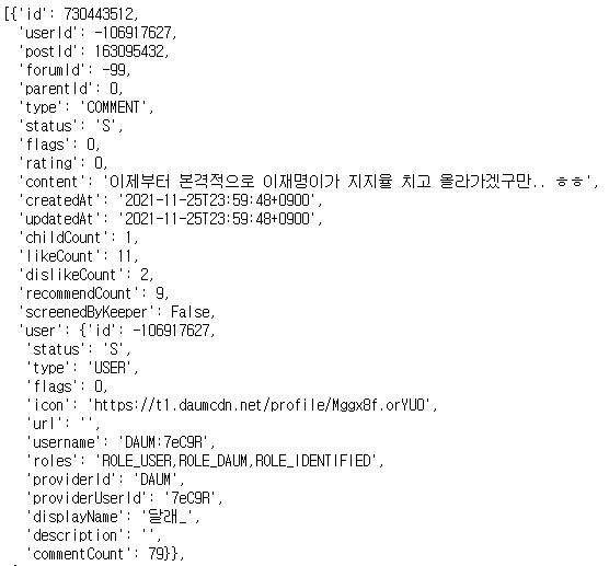 각 기사 마다 댓글들을 잘 가져오는걸 볼 수 있다.