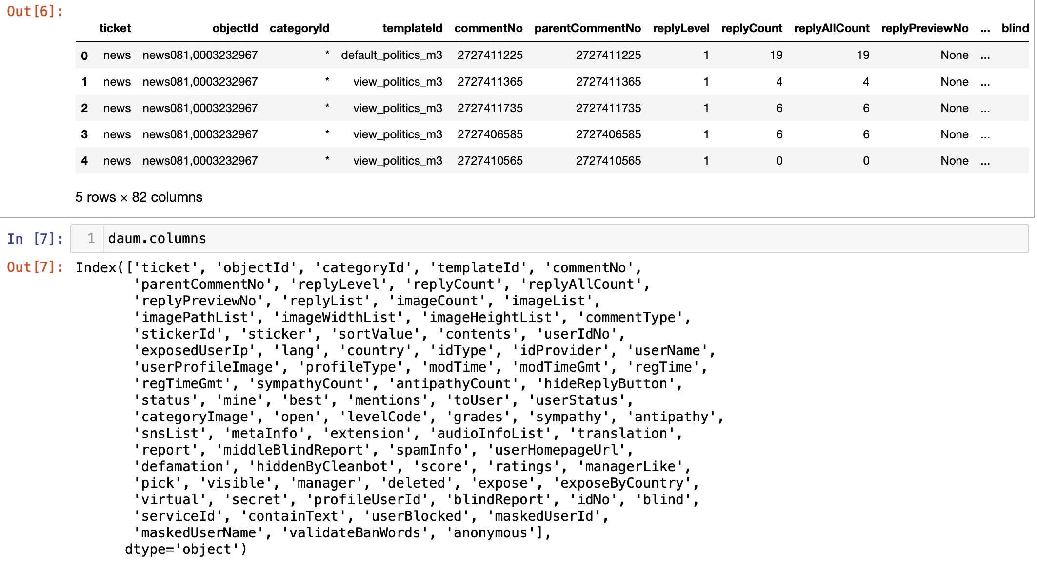 daum 댓글의 경우, api 가 건네준 정보가 많기 때문에 한번 확인을 해야했다