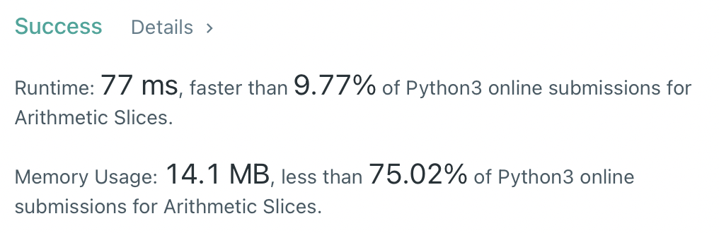 부분배열(contiguous subsequence of the array) 이 등차수열을 만족하는지 확인하고 맞다면 개수를 +1 해주는 문제였다.